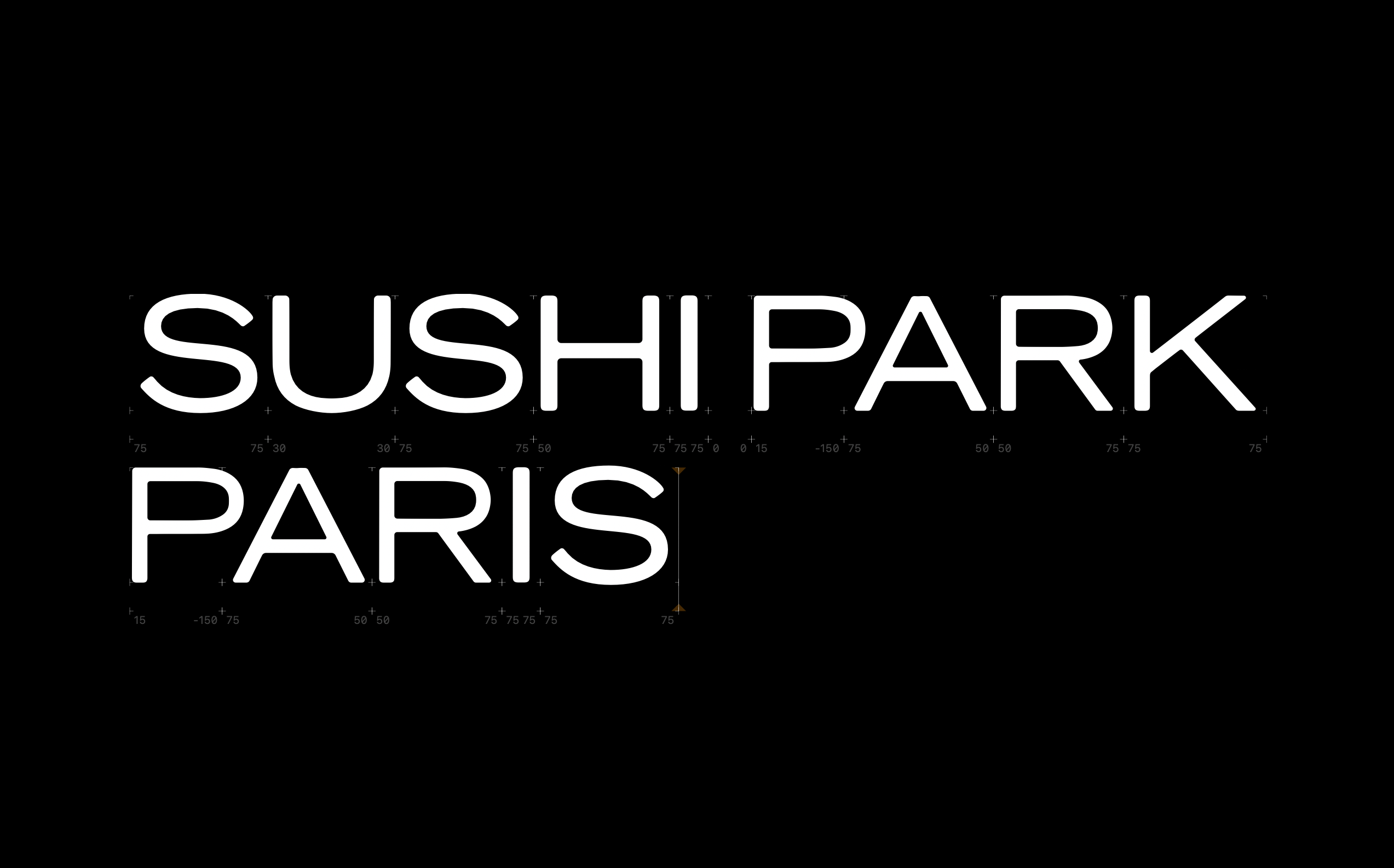 A collaboration identity aligning Sushi Park’s reconstructed custom type with Saint Laurent’s graphic system.